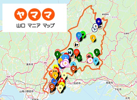 山口マニアマップ(通称「ヤママ」)は、山口の観光を盛り上げるべく様々な活動を行っている、山口高校観光班の皆さんが、「NYタイムズに選ばれるようなすてきな街、山口をもっと地元の方に誇りに思ってほしい」という思いで作成したデジタルマップです。