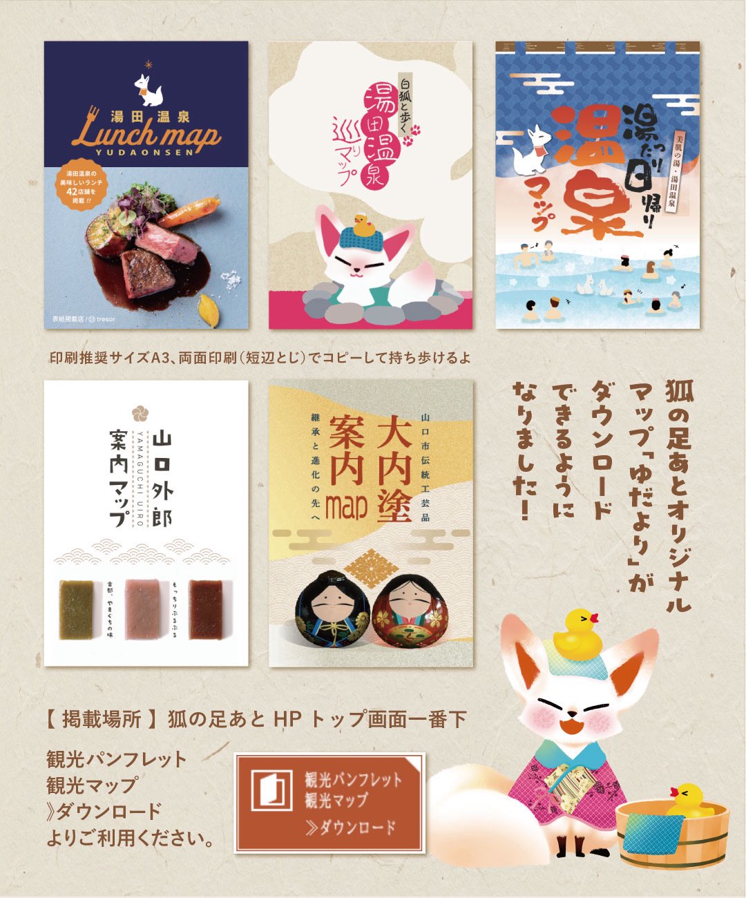 狐の足あとオリジナルパンフレット「ゆだよりMAP」が狐の足あと公式サイトから閲覧、ダウンロードができるようになりました!
